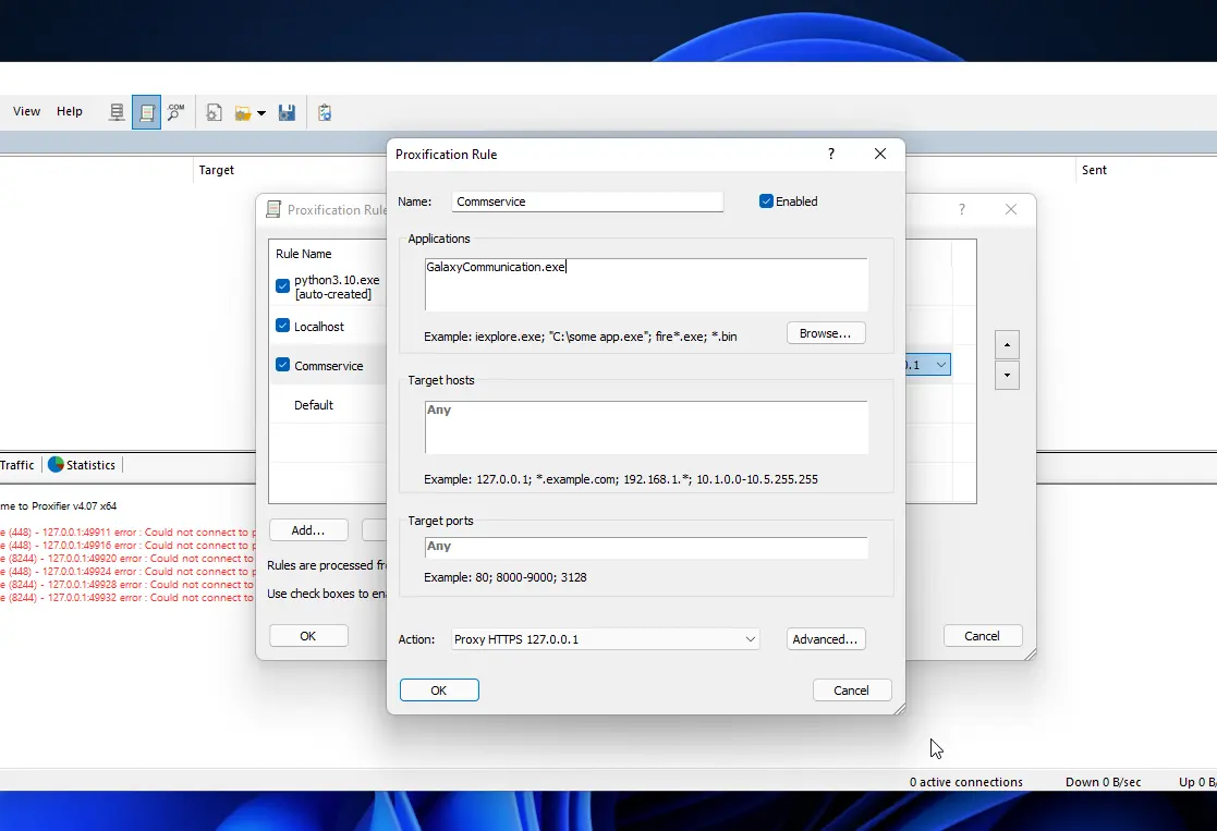 Add a proxification rule to route all connections from GalaxyCommunication.exe through proxy.